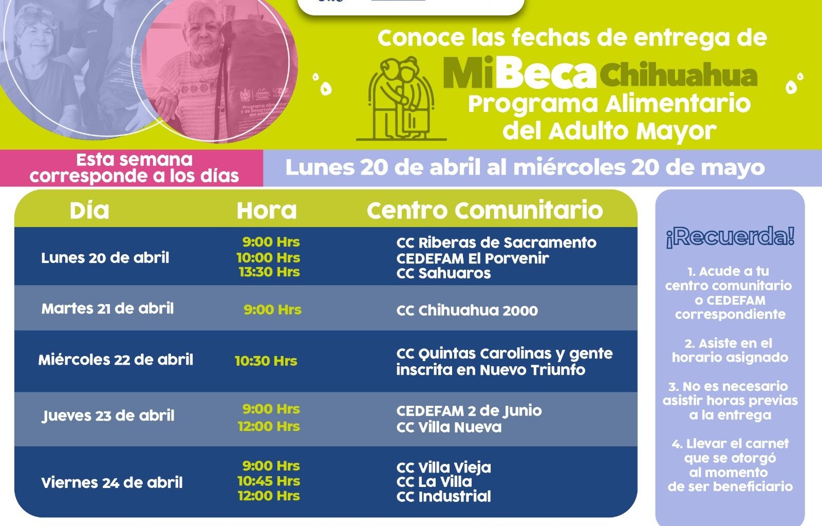 ¡Que no se te pase! Las entregas del PAAM del DIF Municipal están por iniciar –Conoce los horarios correspondientes del 20 al 24 de abril H. Ciudad de Chihuahua,…