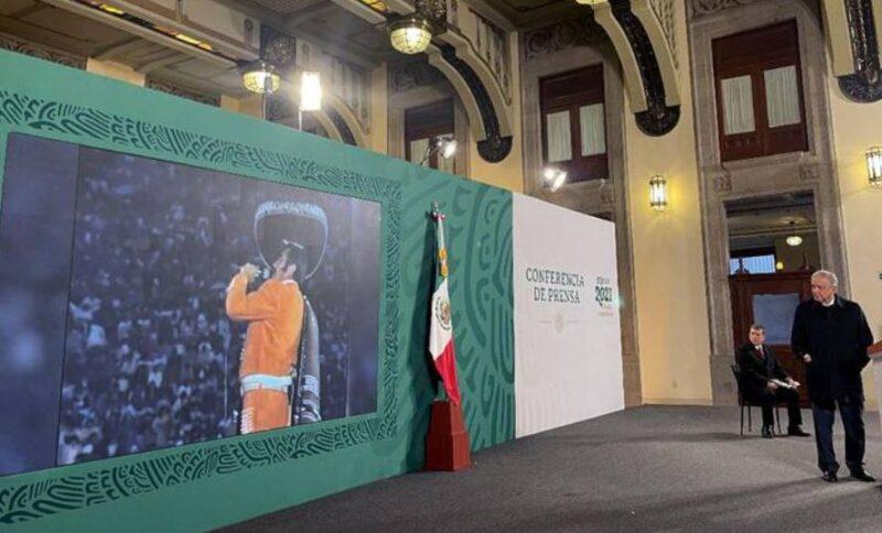 En el video proyectado en Palacio Nacional se escucha al ídolo de la música ranchera hacer una introducción antes de comenzar con la canción:
