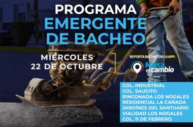 Atenderá Municipio con bacheo estas zonas hoy 22 de octubre