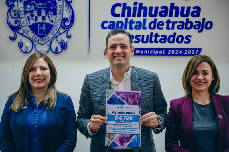 Chihuahua, Chih., a 17 de febrero de 2025.- Tras la jornada del Presupuesto Participativo 2025, el alcalde Marco Bonilla y la coordinadora de Participación Ciudadana, Laura Contreras anunciaron los resultados de la consulta donde votaron 84 mil 196 personas.