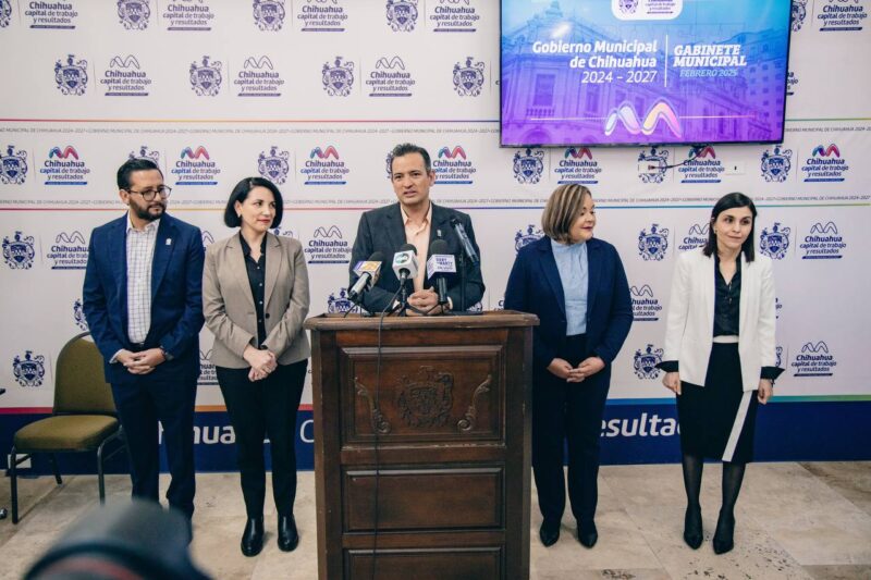 Chihuahua, Chih., a 27 de febrero de 2025.- El alcalde Marco Bonilla, anunció los cambios en el gabinete municipal, donde tras la salida por motivos personales de la oficial mayor Marcela Piedra, Mario Alarcón presidirá esta dependencia, Liliana Herrera Villanueva irá al DIF Municipal y Verónica Pacheco quedará en la Subdirección de Atención a la Violencia Familiar y de Género, cambios que entrarán en vigor a partir de este lunes 3 de marzo.
