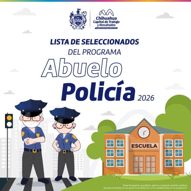 H. Ciudad de Chihuahua, Chih., a 17 de marzo de 2026_.– El Gobierno Municipal de Chihuahua a través de la Dirección de Desarrollo Humano y Educación, da a conocer la lista de las y los seleccionados del programa “Abuelo Policía 2026”, que tiene como objetivo que los adultos mayores realicen actividades para generar ambientes escolares seguros para las niñas, niños y adolescentes que asisten a las escuelas públicas del municipio de Chihuahua.