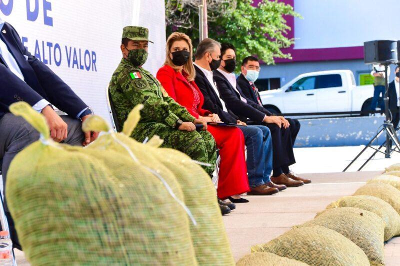 La gobernadora Maru Campos puso en marcha el Operativo de Protección a la Cosecha de Alto Valor, un compromiso del gobierno estatal para proteger el trabajo agrícola y abatir el robo de nuez, alfalfa, chile, algodón, cebolla, y otros productos agrícolas.