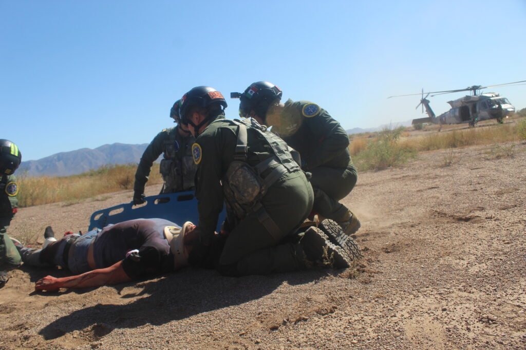 Piloto Aviador Marco Antonio Valencia, Teniente de Fuerza Aérea, explicó la dinámica del ejercicio en donde toca el evento de búsqueda, que es para buscar accidentes, incidentes o personas accidentadas nosotros somos el transporte de la célula médica de evacuación aeromédica.