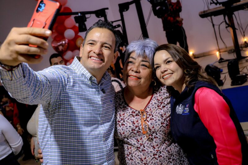 H. Ciudad de Chihuahua, Chih., a 20 de febrero de 2026.- El alcalde de Chihuahua, Marco Bonilla, acompañado de su esposa Karina Olivas, presidenta del DIF Municipal, asistió al “Baile de Corazones” organizado en el Centro Comunitario de Ranchería Juárez, donde convivió con integrantes de los clubes del abuelo de la zona sur de la ciudad, quienes disfrutaron de una tarde llena de música, baile y celebración con motivo del Día de San Valentín.