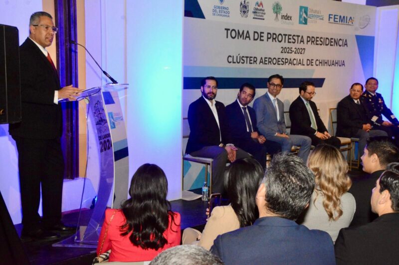 Chihuahua, Chih.- Cobijado por socios, aliados de gobierno estatal, municipal y federal, personalidades de la academia y cámaras empresariales, el ingeniero Mario Enríquez, asumió el cargo de presidente del Clúster Aeroespacial de Chihuahua para el periodo 2025-2027.