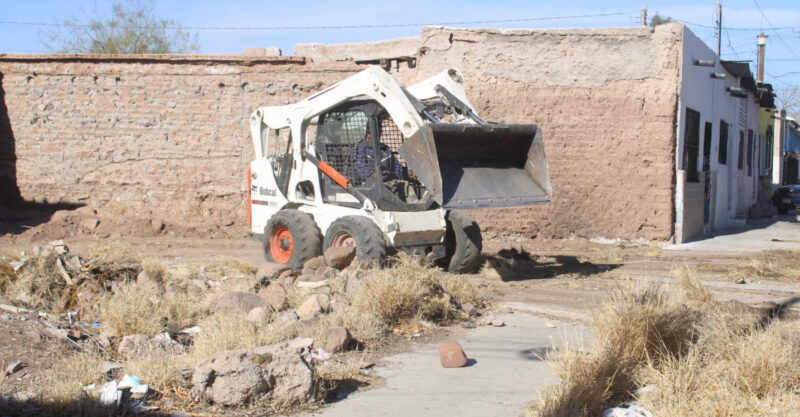Lo anterior, con maquinaria pesada, misma que se encarga de remover el escombro y basura que la ciudadanía deposita en terrenos baldíos, de los cuales se han atendido un estimado de 51 mil 200 metros cuadrados.