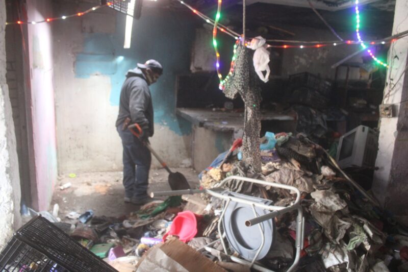 Asimismo, personal de Servicios Públicos Municipales, retiraron un estimado de 26 toneladas de basura y acumulación tanto al exterior como al interior, además de un gato sin vida.