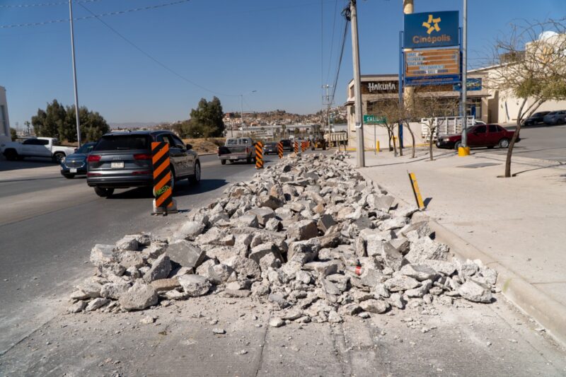 Chihuahua, Chih., a 13 de febrero del 2025.- El Gobierno Municipal, a través de la Dirección de Obras Públicas, informa que continúa la rehabilitación de losas a base de concreto hidráulico en la Vialidad Ch-P, en el tramo de la avenida Nueva España a calle Diamante, por lo que se exhorta a la población que conduzca con precaución ya que se encuentra reducida la circulación del carril derecho.