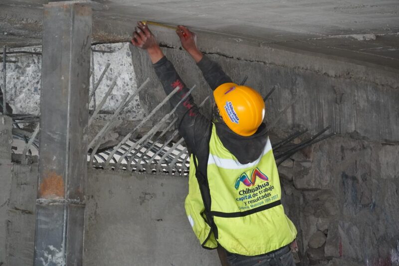 H. Ciudad de Chihuahua, Chih., a 16 de febrero de 2026.- El Gobierno Municipal, a través de la Dirección de Obras Públicas, continua con los trabajos de remediación del puente vehicular y peatonal ubicado en la colonia Riberas de Sacramento.