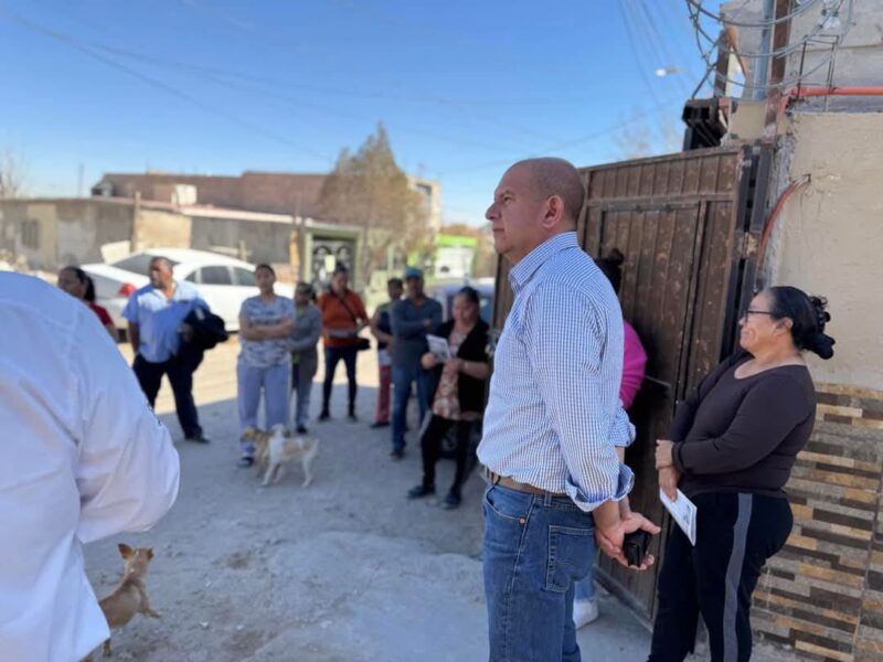 Cd Juárez, Chih. a 9 de febrero del 2025.- El diputado Cuauhtémoc Estrada Sotelo, coordinador de la bancada de morena en el Congreso de Chihuahua, realizó junto con los vecinos de la colonia Tierra Nueva I una asamblea con el objetivo de avanzar en el proyecto de pavimentación de esta zona de Ciudad Juárez.