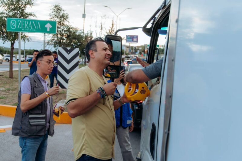 H. Ciudad de Chihuahua, Chih. A 28 de agosto de 2025.- En apoyo al Teletón, la tarde de ayer, el alcalde Marco Bonilla y la presidenta del DIF Municipal, Karina Olivas, acompañaron a los directivos de esta institución al boteo realizado en el crucero de la avenida de La Cantera y Tomás Valles para apoyar esta noble causa.