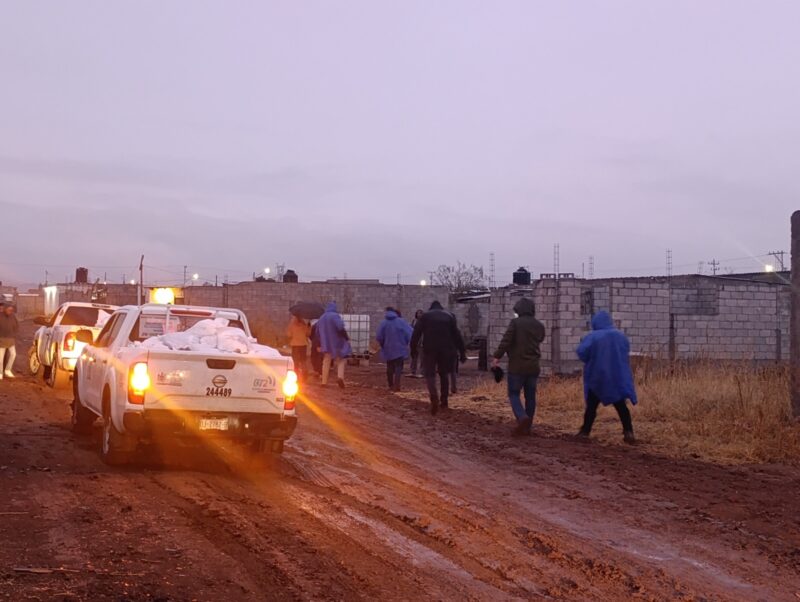 Se visitaron casas para conocer de primera mano las necesidades de las familias, además de la entrega de apoyos. En total, se distribuyeron 135 despensas, 128 cobijas y 90 tramos de hule, además de juguetes y bolsas de dulces, de acuerdo a la situación de cada hogar.
