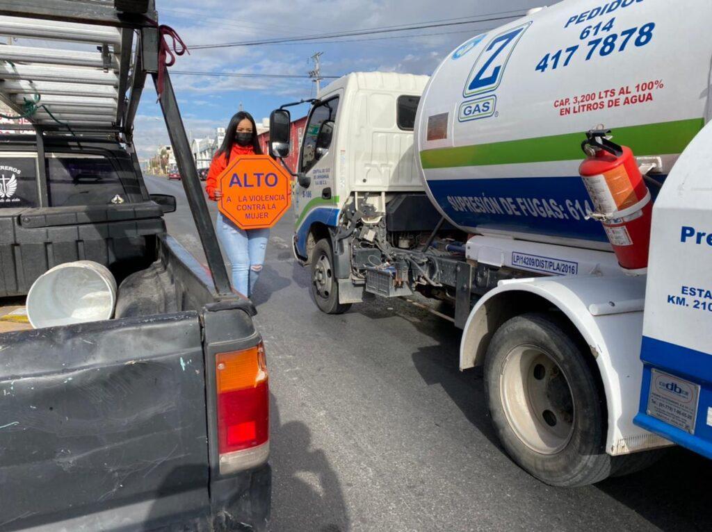 La regidora del Ayuntamiento de Chihuahua del Partido de la Revolución Democrática (PRD), Diana Acosta López con motivo de que el día de hoy 25 de noviembre se celebra el Día Internacional de la Eliminación de la Violencia contra la Mujer, estuvo presente en cruceros de la ciudad en busca de concientizar sobre el tema.