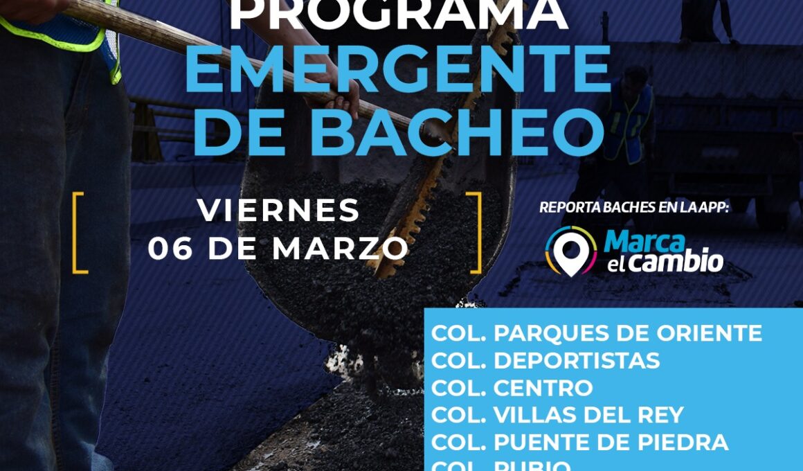 Seis zonas tendrán bacheo este viernes 6 de marzo: Municipio