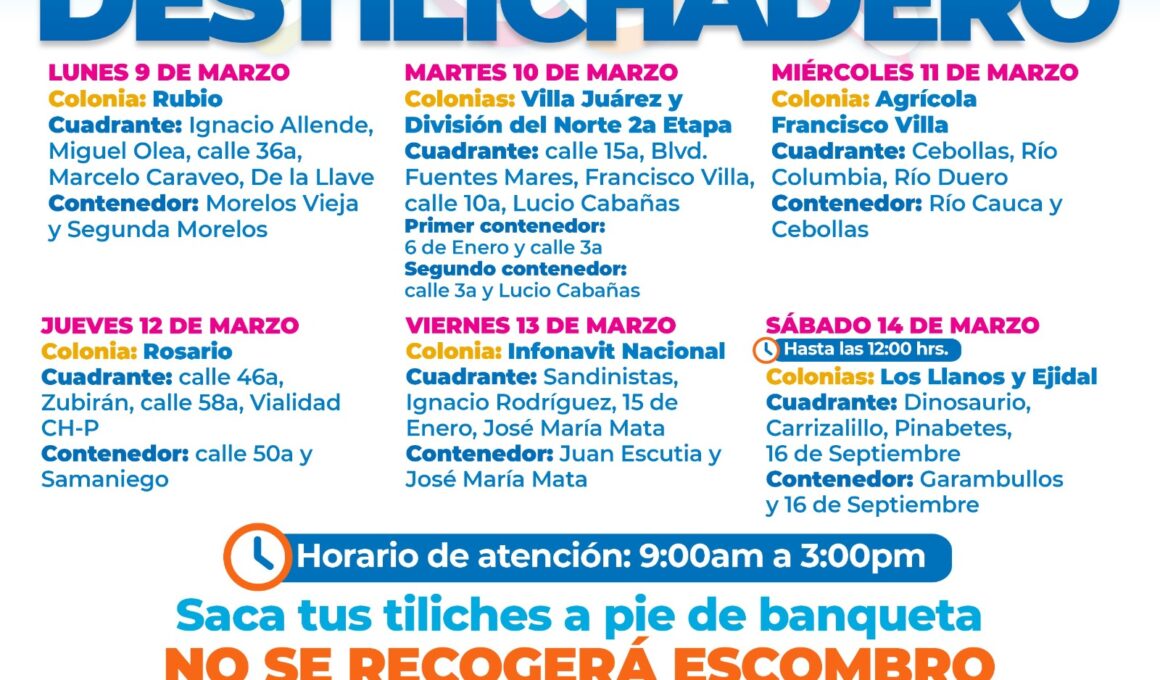Estará programa Destilichadero en ocho colonias del 9 al 14 de marzo