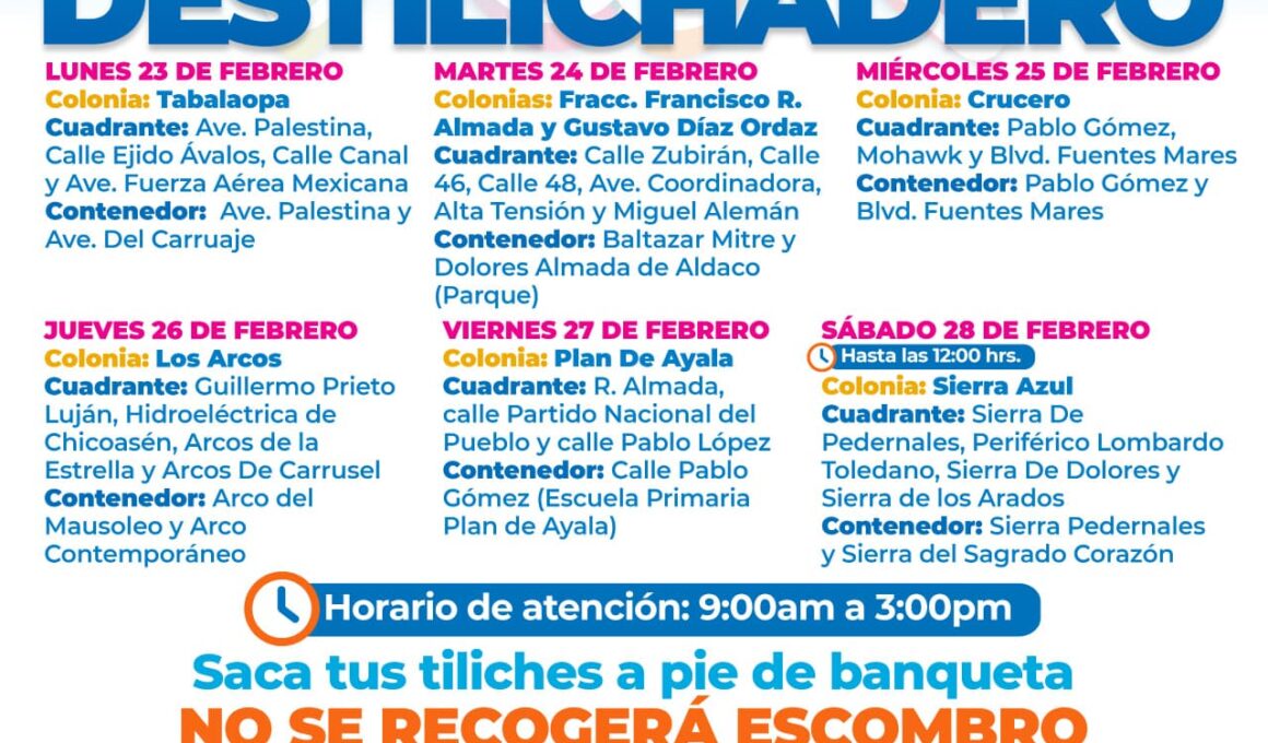 Estará programa Destilichadero en siete colonias del 23 al 28 de febrero