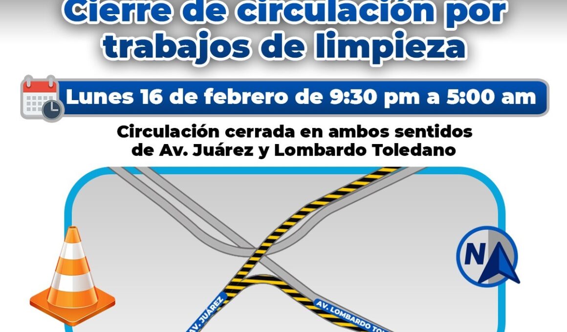 ¡Recuerda! Por limpieza hoy cerrará distribuidor vial de Lombardo Toledano y avenida Juárez
