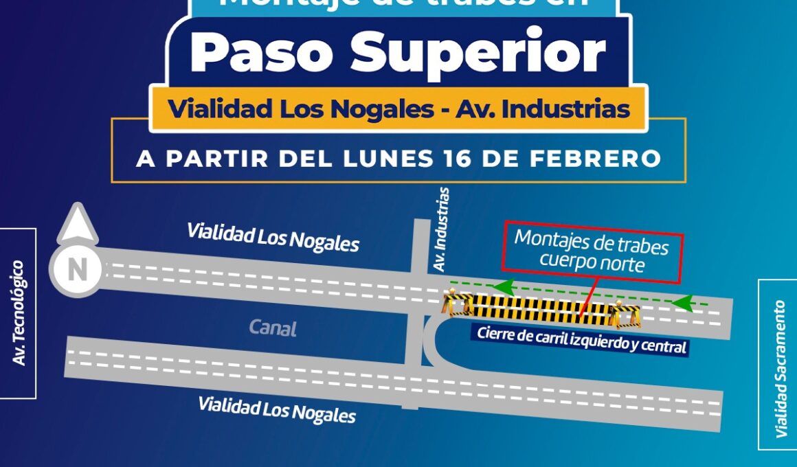 A partir de este lunes reducción de carriles en vialidad Los Nogales por montaje de trabes en el Paso Superior
