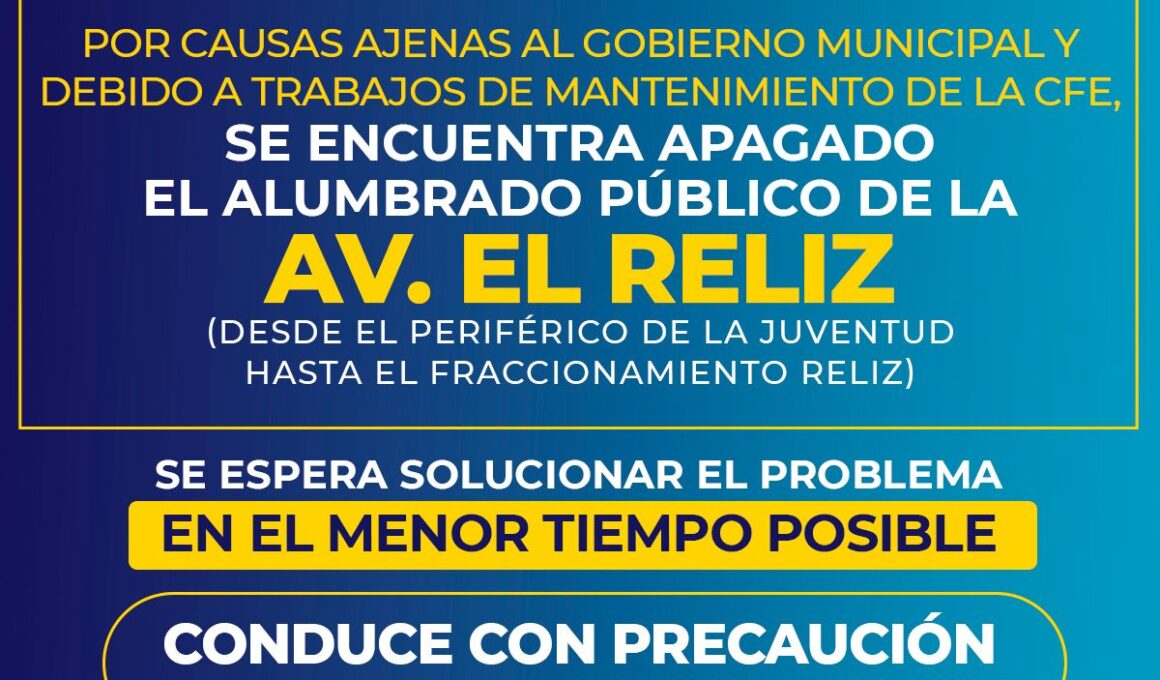 Continúa mantenimiento en Zona Reliz por CFE; Municipio informa que siguen apagadas 16 luminarias