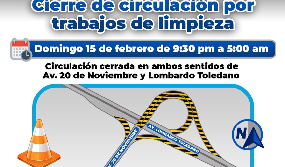 ¡Recuerda! Por limpieza hoy cerrará distribuidor vial de Lombardo Toledano y 20 de noviembre