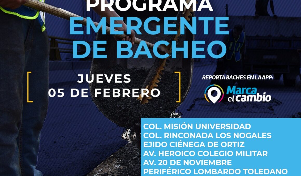 Seis zonas tendrán bacheo este jueves 5 de febrero: Municipio