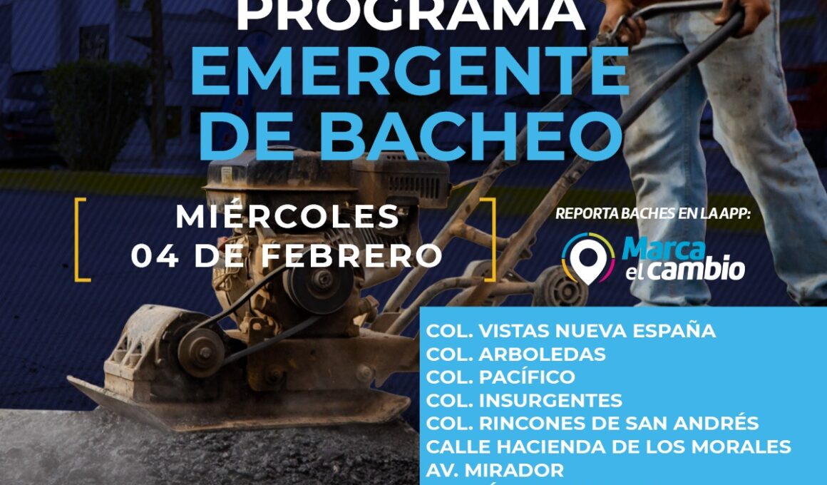 Atenderá Municipio ocho zonas con bacheo este miércoles 4 de febrero