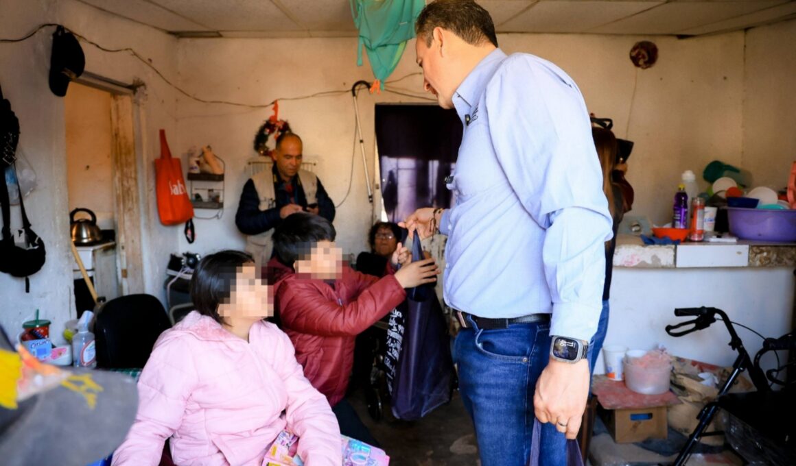 Reparte alcalde Marco Bonilla y presidenta del DIF Municipal cenas navideñas en la colonia Crucero
