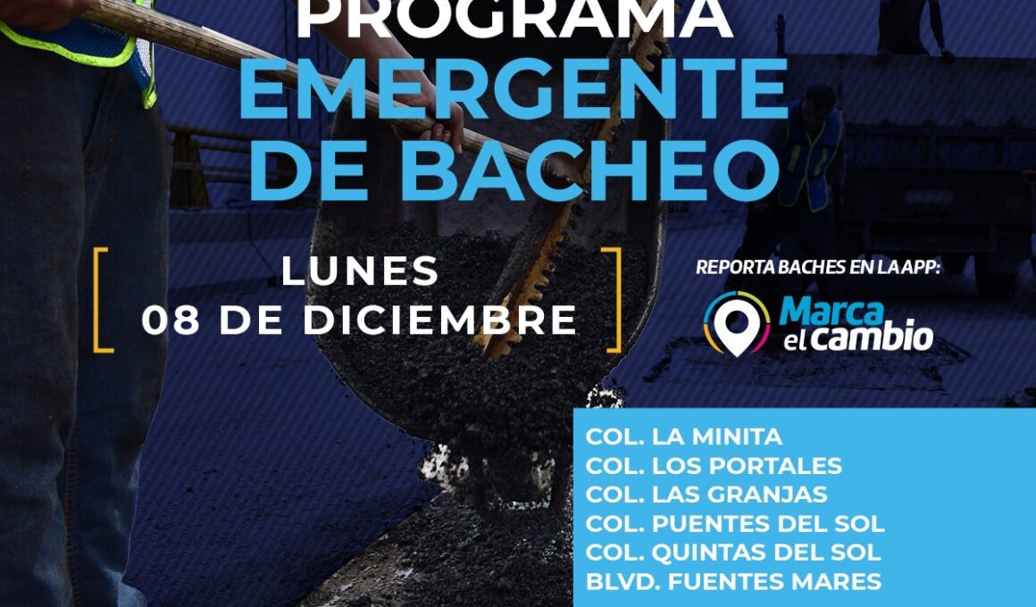 Atenderá Municipio seis zonas con bacheo este lunes 8 de diciembre