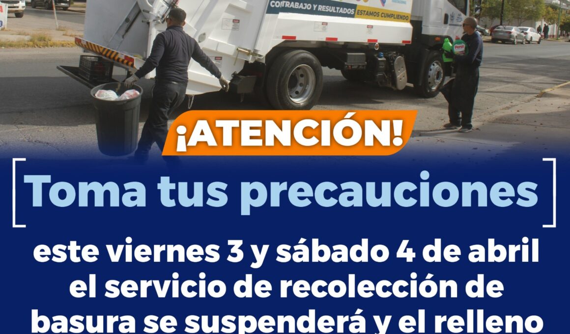 Anuncia Municipio suspensión del servicio de recolección de basura los próximos 3 y 4 de abril