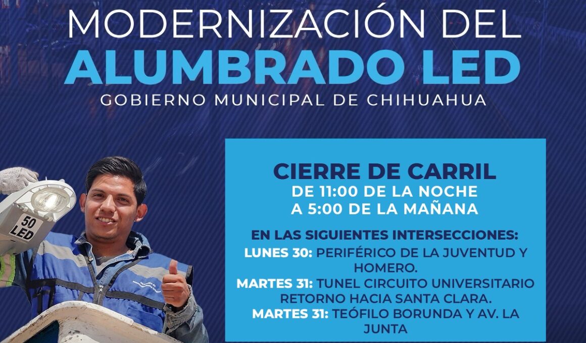Emite Municipio alerta vial por modernización de alumbrado en tres zonas de la ciudad
