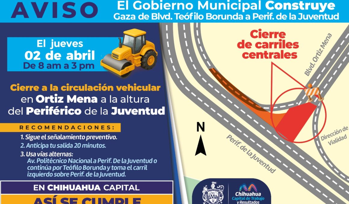 ¡Toma precauciones! Realizará Municipio cierre temporal en boulevard Ortiz Mena por trabajos de infraestructura hidráulica