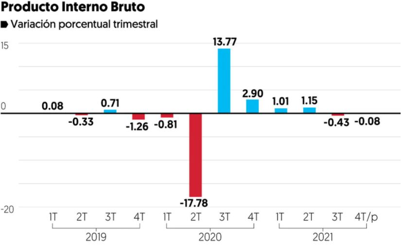 El PIB nacional se contrajo 0.1% en el último trimestre de 2021, de acuerdo con cifras del Inegi.…