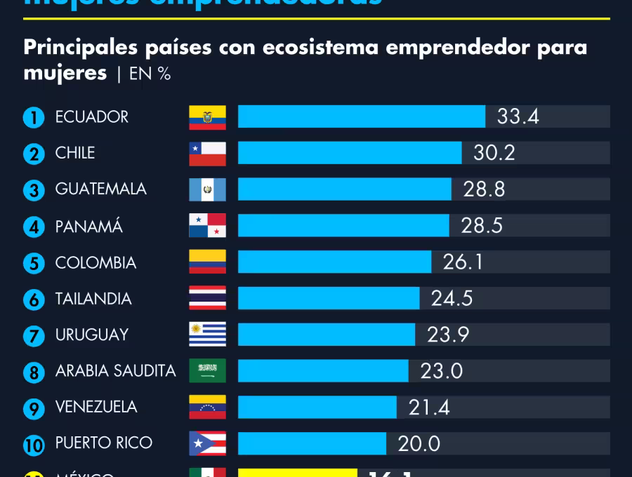 Países con mayor porcentaje de mujeres emprendedoras: Ecuador lidera, México rezagado