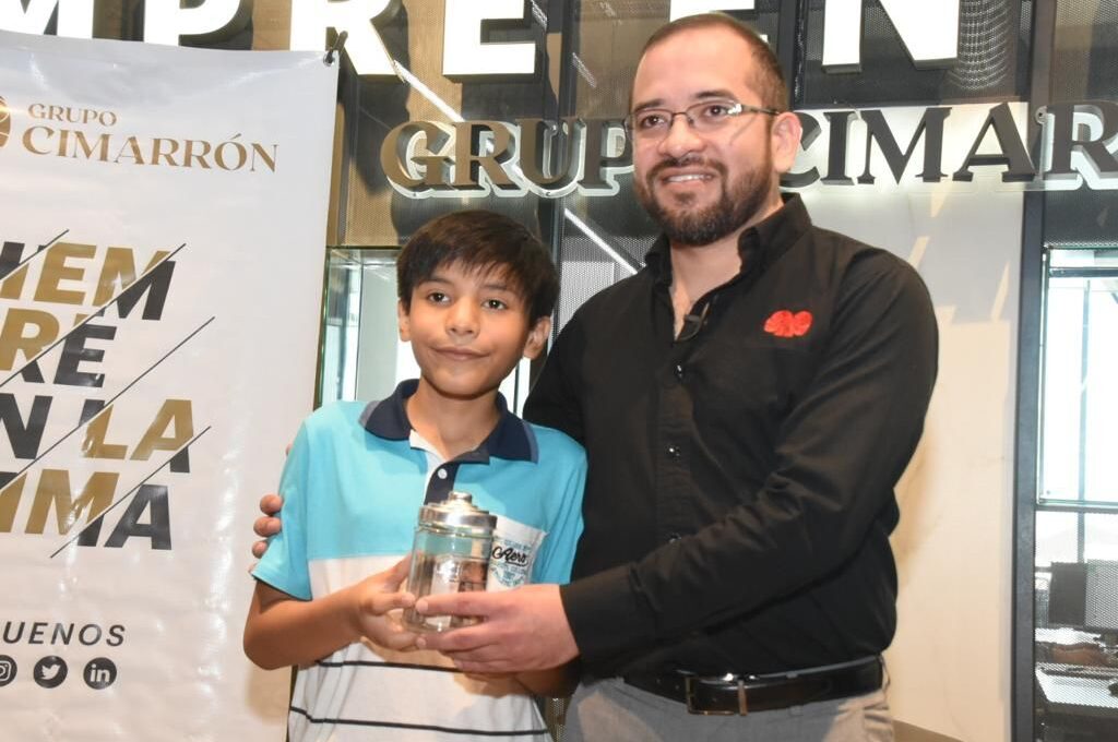 Recibe Alan Domínguez el premio de 20 mil pesos en efectivo, de manos del Grupo empresarial CIMARRÓN Alan…