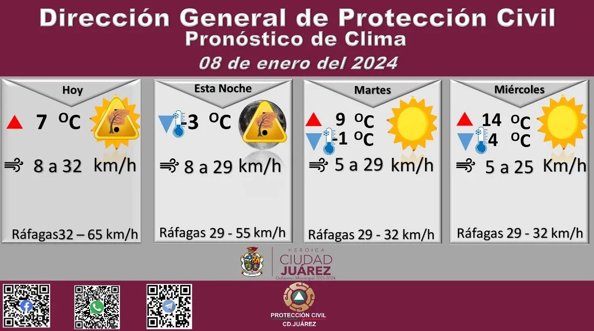 Pronostican ráfagas de viento de hasta 65 kilómetros por hora para este lunes