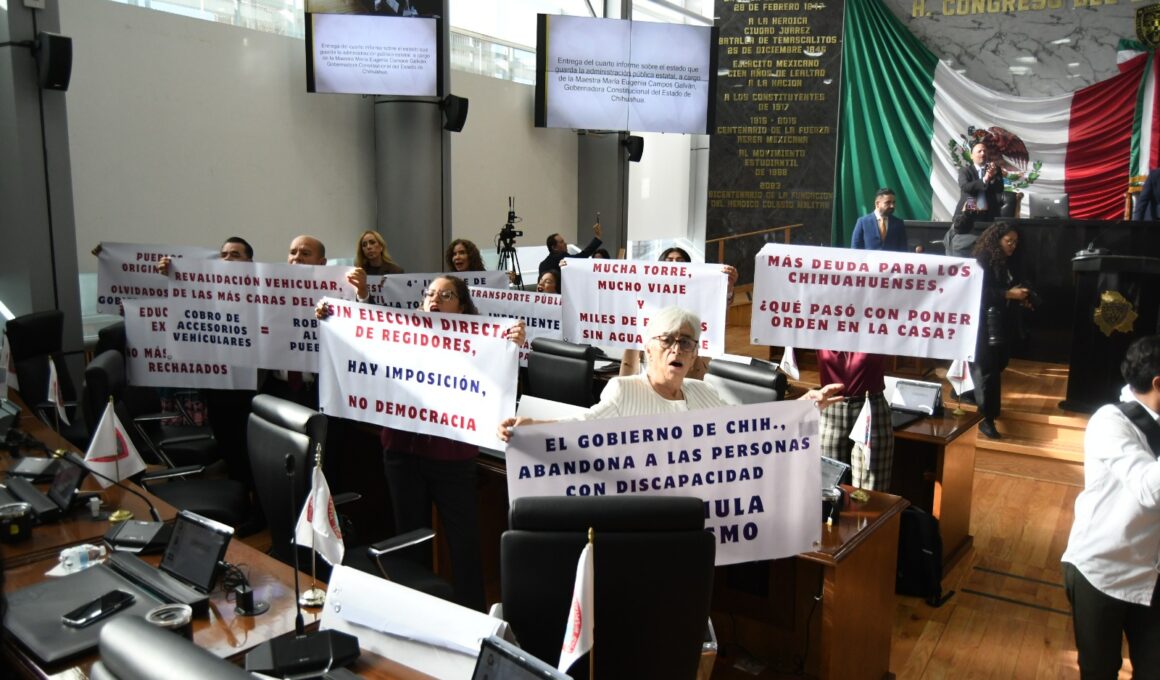 Chihuahua, Chih, 01 de marzo del 2026.- Diputados del grupo parlamentario de morena protagonizaron una protesta dentro del…
