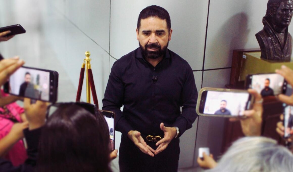 Chihuahua, Chih; 30 de diciembre del 2025.- El diputado Cuauhtémoc Estrada, coordinador del Grupo Parlamentario de morena en…
