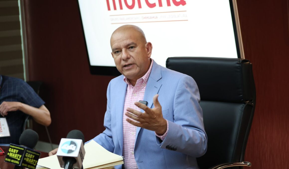 Chihuahua, Chih; 7 de marzo del 2026.— El coordinador del Grupo Parlamentario de morena en el Congreso del…