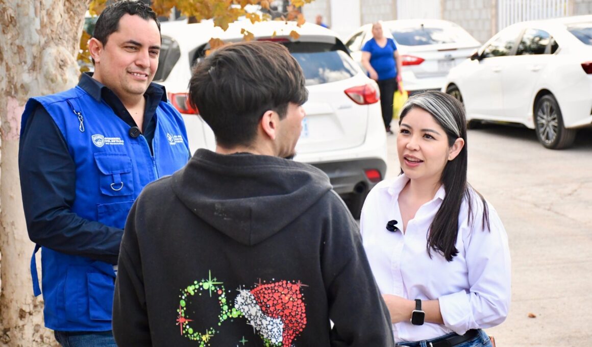 Nancy “La China” Frías recorre la colonia Ponce de León junto a la JMAS para impulsar el programa “Chihuahua Sin Fugas”