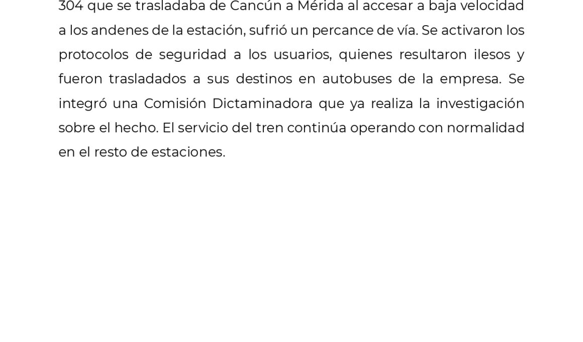 Se descarrila un vagón del Tren Maya en Yucatán; autoridades reportan saldo blanco