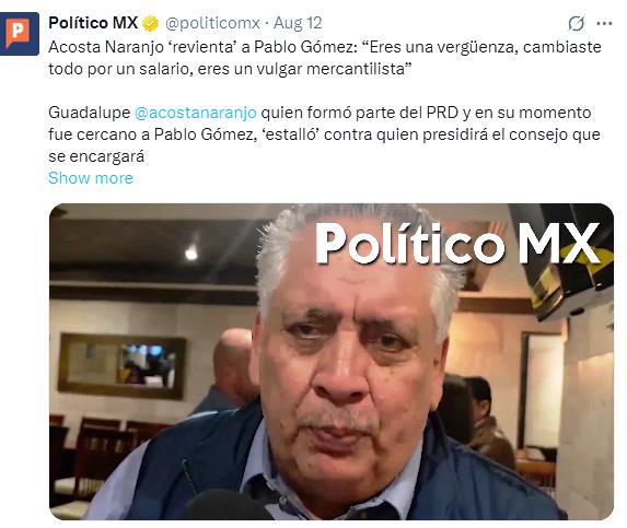 Acosta Naranjo acusa a Pablo Gómez de “autoritarismo” y de contradecir sus propias reformas