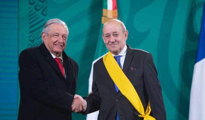 AMLO entrega la condecoración ‘Águila Azteca’ al canciller de Francia, Jean-Yves Le Drian