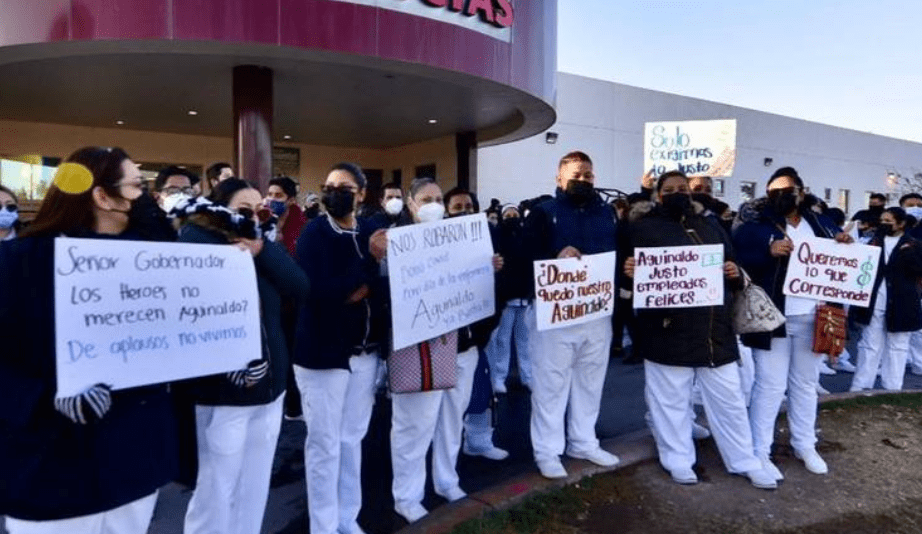 Con aguinaldo recortado y sin bono COVID: personal de salud protesta en Coahuila