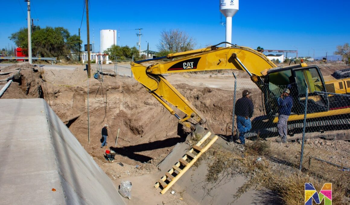 Trabajan en Cárcamo de la Calle Bugambilias en Meoqui para evitar inundaciones