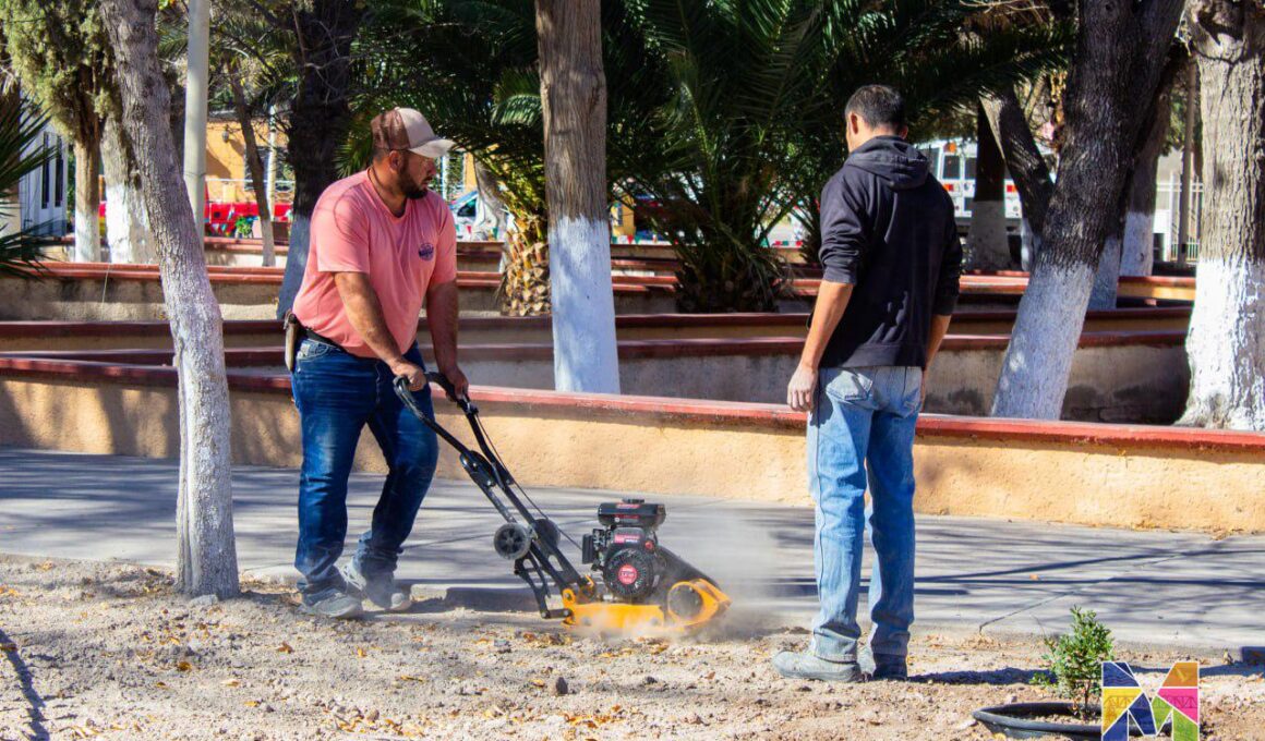 Ultiman detalles en rehabilitación de la Plaza de Nuevo San Lucas en Meoqui
