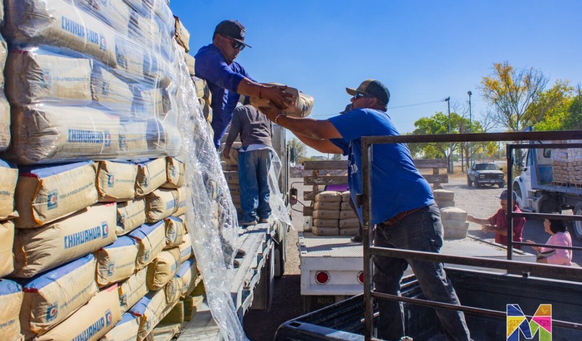 Benefician a 42 familias de Guadalupe Victoria en Meoqui con cemento subsidiado