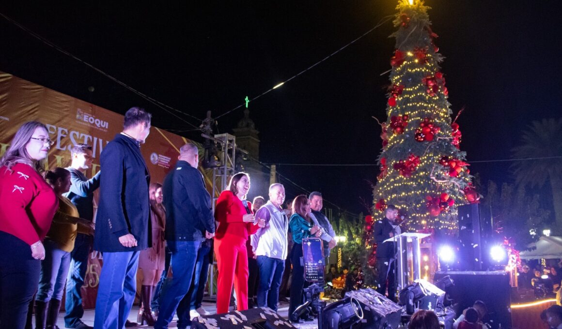 Llega la Navidad a Meoqui con el encendido del Árbol ante más de 3 mil personas