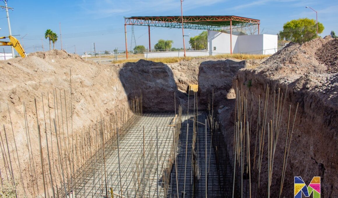Avanza construcción de cárcamo de bombeo en la calle Bugambilia en Acceso Norte de Meoqui