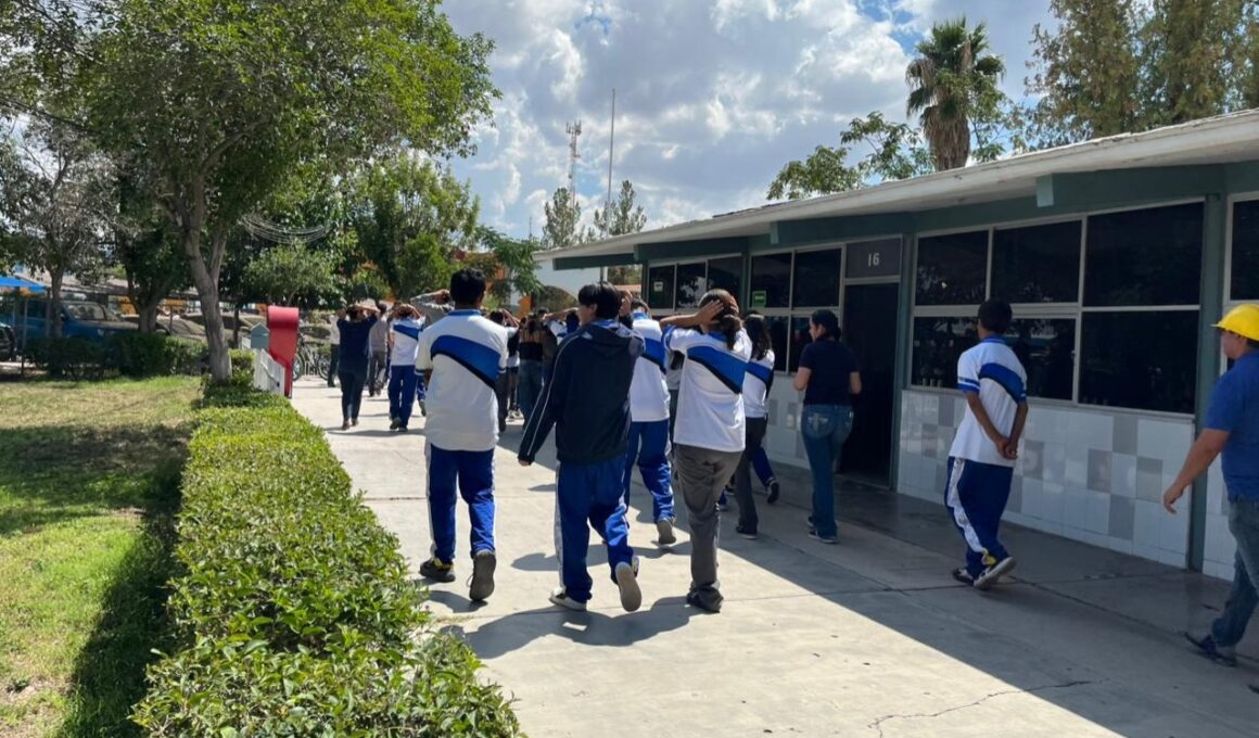 Realizan simulacro de sismo en el CBTa 147 de Meoqui en el marco del Día Nacional de Protección Civil